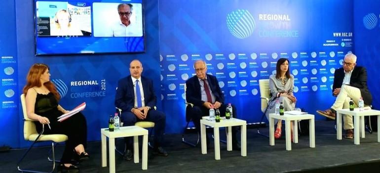 Στην 9η διάσκεψη περιφερειακής ανάπτυξης «Regional Growth Conference», που διεξάγεται στην Πάτρα από τις 3 έως τις 5 Ιουνίου, συμμετείχε σήμερα ο Υφυπουργός Αγροτικής Ανάπτυξης και Τροφίμων, Γιάννης Οικονόμου. Η συζήτηση επικεντρώθηκε στην Τοπική Διακυβέρνηση και Ανάπτυξη εστιάζοντας στο εμβληματικό πρόγραμμα Leader.