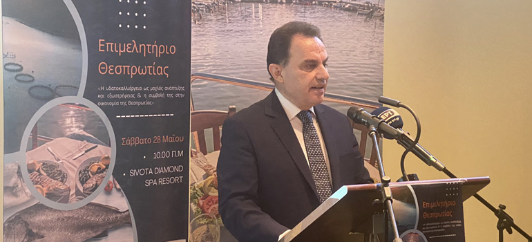Τη σημαντική συμβολή της υδατοκαλλιέργειας στην ανάπτυξη του πρωτογενούς τομέα και της ελληνικής οικονομίας, ανέδειξε ο υπουργός Αγροτικής Ανάπτυξης και Τροφίμων κ. Γιώργος Γεωργαντάς, σε ομιλία του σε Ημερίδα με θέμα «Η υδατοκαλλιέργεια ως μοχλός ανάπτυξης και εξωστρέφειας», που διοργάνωσε το Επιμελητήριο Θεσπρωτίας, στα Σύβοτα.