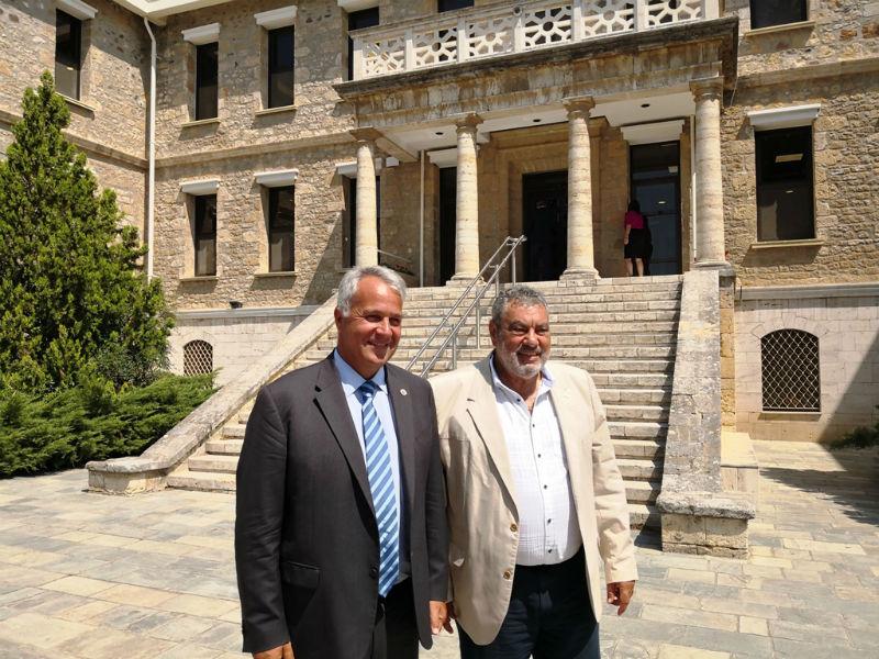 Στη συνέχεια ο Υπουργός επισκέφθηκε τις εγκαταστάσεις της Αμερικανικής Γεωργικής Σχολής όπου τον υποδέχθηκαν ο ακαδημαϊκός διευθυντής του Perrotis College, Δρ. Αθανάσιος Τσαυτάρης και ο διευθυντής της Σχολής Επαγγελματικής Εκπαίδευσης, Δρ. Βαγγέλης Βέργος. Ξεναγήθηκε στις εγκαταστάσεις του Perrotis College, του Δημοτικού σχολείου και είδε από κοντά τις υπόλοιπες εκπαιδευτικές δομές της Αμερικανικής Γεωργικής Σχολής. Ακολούθησε συνάντηση με τον πρόεδρο της Σχολής και του Perrotis College, Δρ. Πάνο Κανέλλη, κατά τη διάρκεια της οποίας ενημερώθηκε για το πολυεπίπεδο έργο και τη διαχρονική προσφορά του μη κερδοσκοπικού εκπαιδευτικού ιδρύματος με ιστορία 115 ετών.