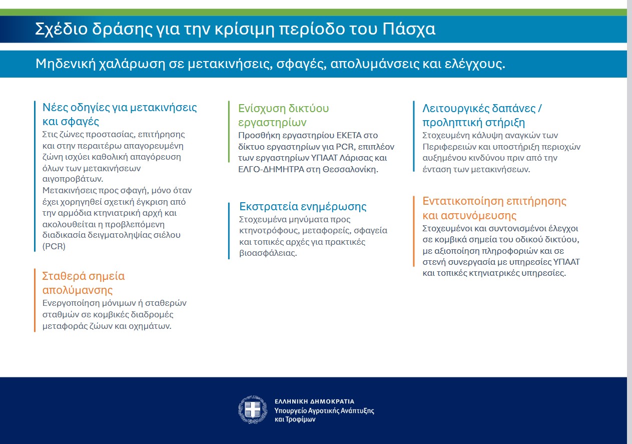 - Ενημερωνόμαστε για τα μέτρα που ισχύουν σε ζώνες προστασίας και επιτήρησης από την αρμόδια Κτηνιατρική Υπηρεσία.